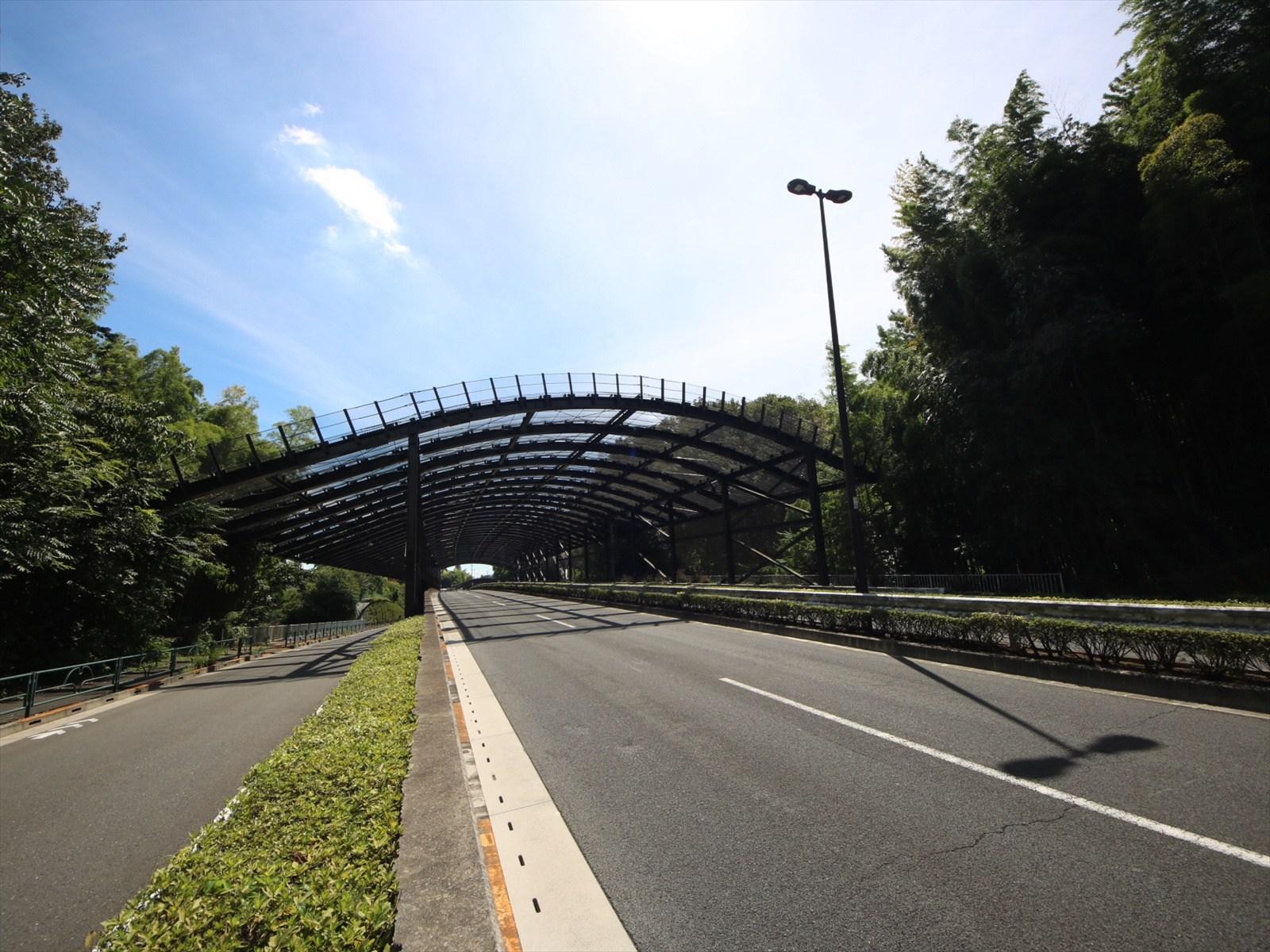 新滝山街道を走っていると「変なトンネル」が目に入ります。トンネルというよりフェンスといったほうが近いかもしれません。じつはこれ、ゴルフ場からの飛球対策施設だったのです。