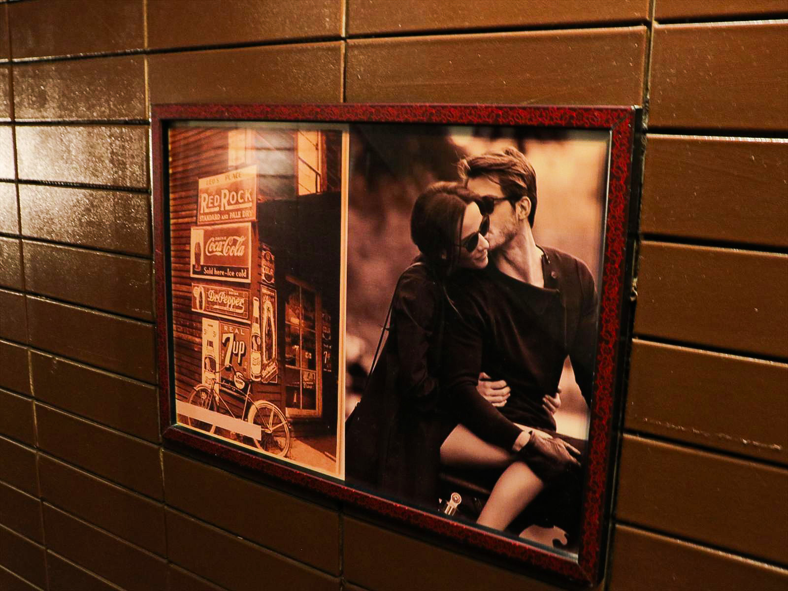 『cafe&dining LOTUS(ロータス)』は地下1階にあるのですが、階段を降りていくとストリートアートの看板が目を惹きます。所々に80年代のアメリカを彷彿とさせるブロマイドが飾ってあり、目で楽しめる要素がたくさんあります。
