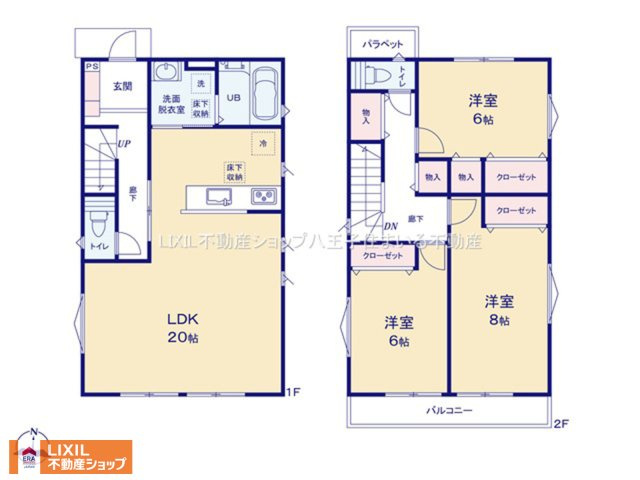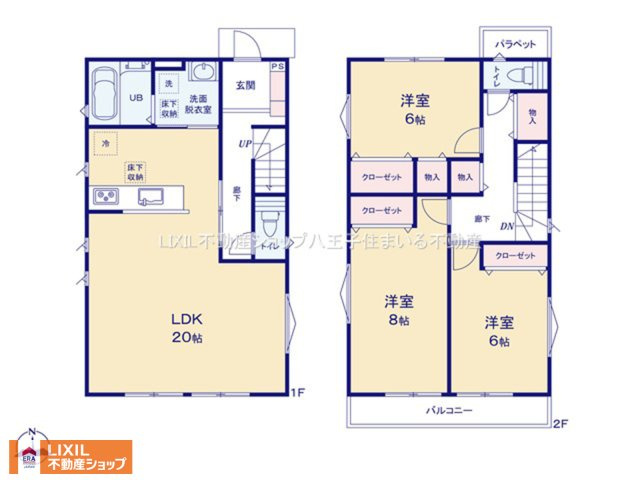 LDK 20.0帖 1室 洋室 8.0帖 1室 洋室 6.0帖 2室 |