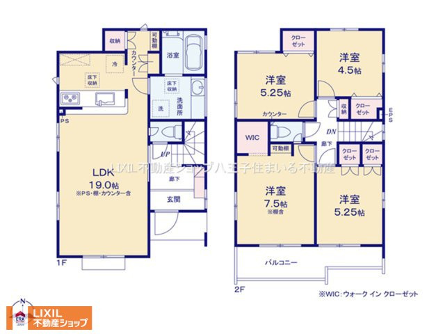 LDK 19.0帖 1室 洋室 7.5帖 1室 洋室 5.2帖 2室 洋室 4.5帖 1室 |