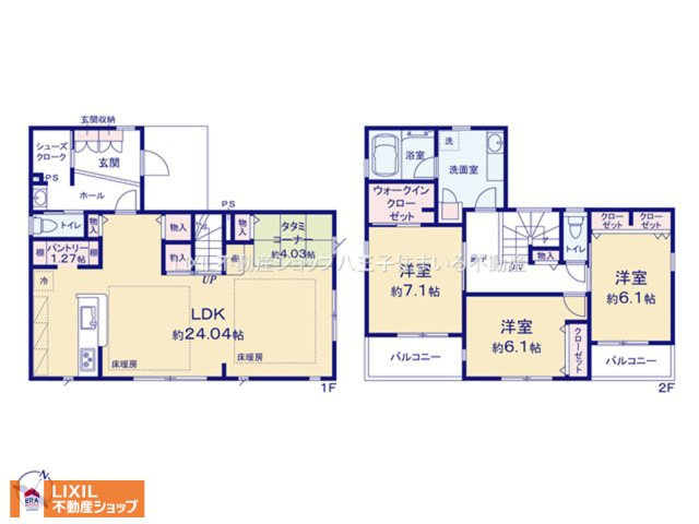 LDK 24.0帖 1室 / 洋室 7.1帖 1室 / 洋室 6.1帖 2室 / |