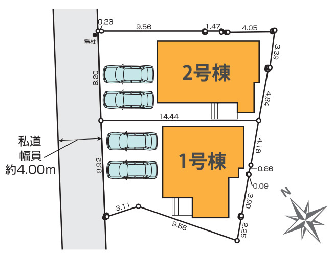 | 接道状況 | 一方 (北西側 私道4.0m) | ||
