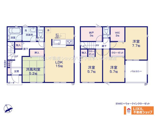 LDK 15.0帖 1室 和室 5.2帖 1室 洋室 7.7帖 1室 洋室 5.7帖 2室 その他 3.0帖 1室 |