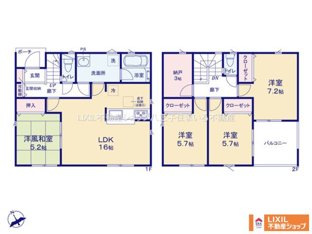 LDK 16.0帖 1室 和室 5.2帖 1室 洋室 7.2帖 1室 洋室 5.7帖 2室 その他 3.0帖 1室 |