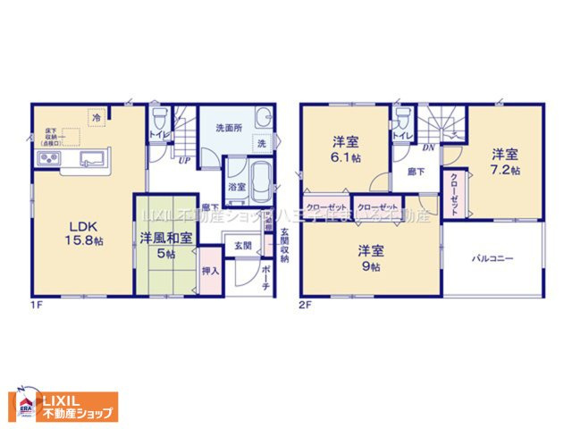 LDK 15.8帖 1室 和室 5.0帖 1室 洋室 9.0帖 1室 洋室 7.2帖 1室 洋室 6.1帖 1室 |