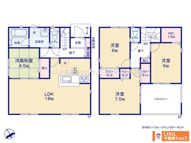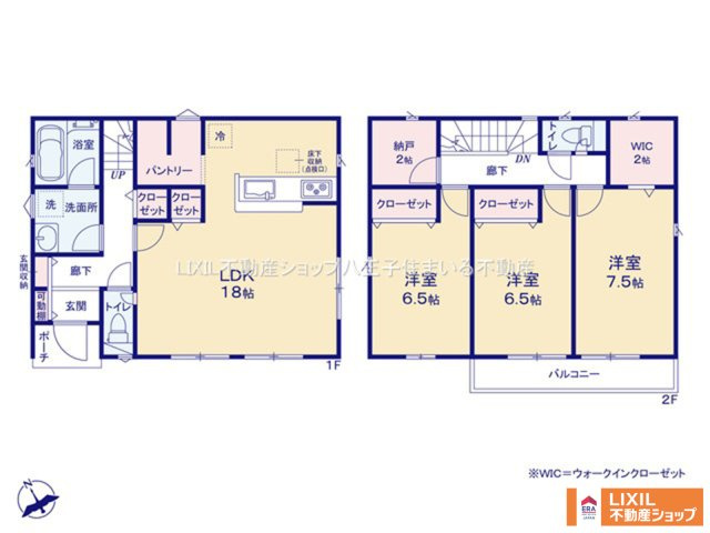 LDK 18.0帖 1室 洋室 7.5帖 1室 洋室 6.5帖 2室 |