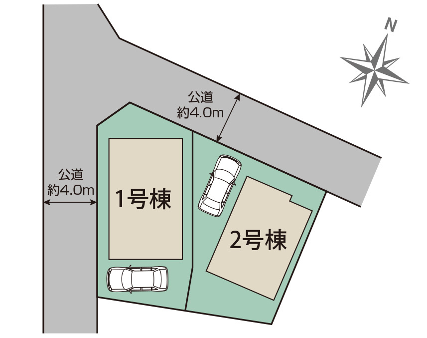 | 接道状況 | 角地 (西側 公道4.0m) (北側 公道 間口4.0m) | ||