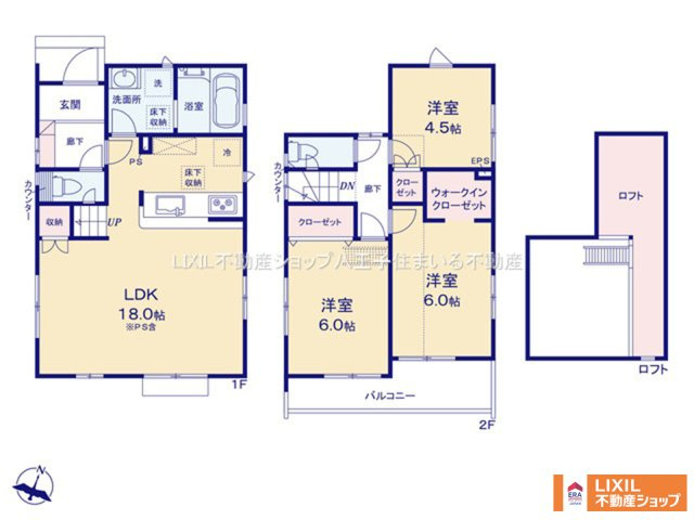 LDK 18.0帖 1室 / 洋室 6.0帖 2室 / 洋室 4.5帖 1室 / |