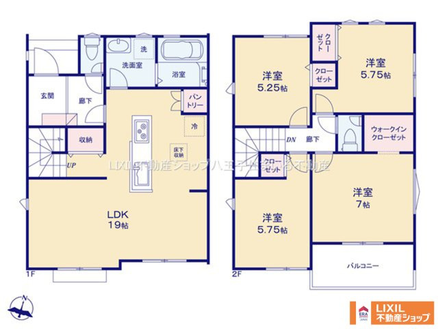 LDK 19.0帖 1室 洋室 7.0帖 1室 洋室 5.7帖 2室 洋室 5.2帖 1室 |