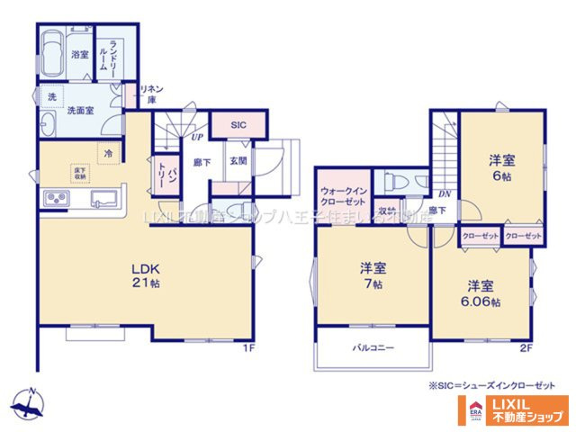LDK 21.0帖 1室 洋室 7.0帖 1室 洋室 6.0帖 2室 |