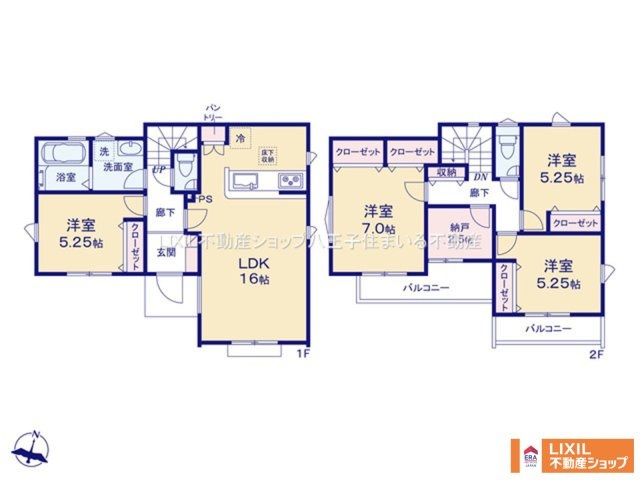 LDK 16.0帖 1室 洋室 5.2帖 1室 洋室 7.0帖 1室 洋室 5.2帖 2室 その他 2.5帖 1室 |