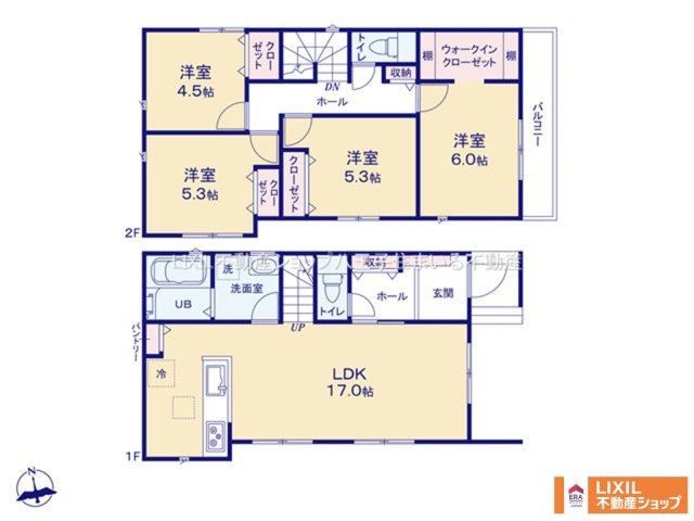 LDK 17.0帖 1室 / 洋室 6.0帖 1室 / 洋室 5.3帖 2室 / 洋室 4.5帖 1室 / |