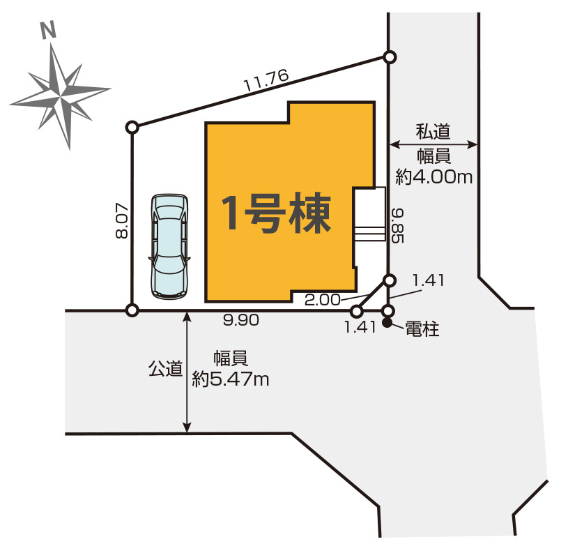 | 接道状況 | 角地 (南側 公道5.4m) (南東側 私道4.0m) | ||