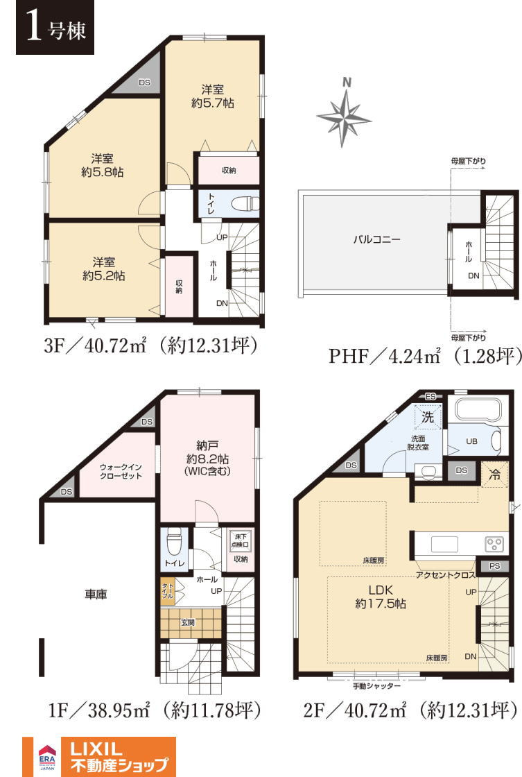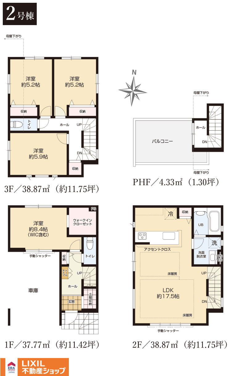 | 建物面積 | 105.54㎡ ~ 105.76㎡ | 土地面積 | 187.84㎡ ~ 187.85㎡ |