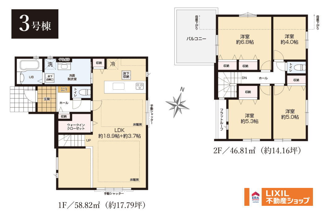 | 建物面積 | 104.98㎡ ~ 111.79㎡ | 土地面積 | 147.28㎡ ~ 148.41㎡ |