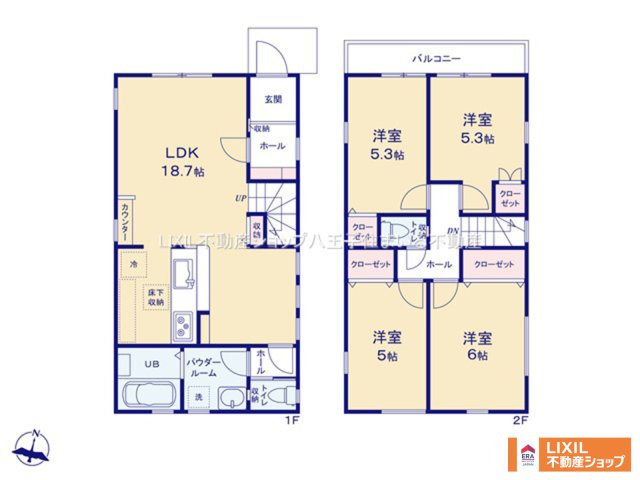 LDK 18.7帖 1室 洋室 6.0帖 1室 洋室 5.3帖 2室 洋室 5.0帖 1室 |