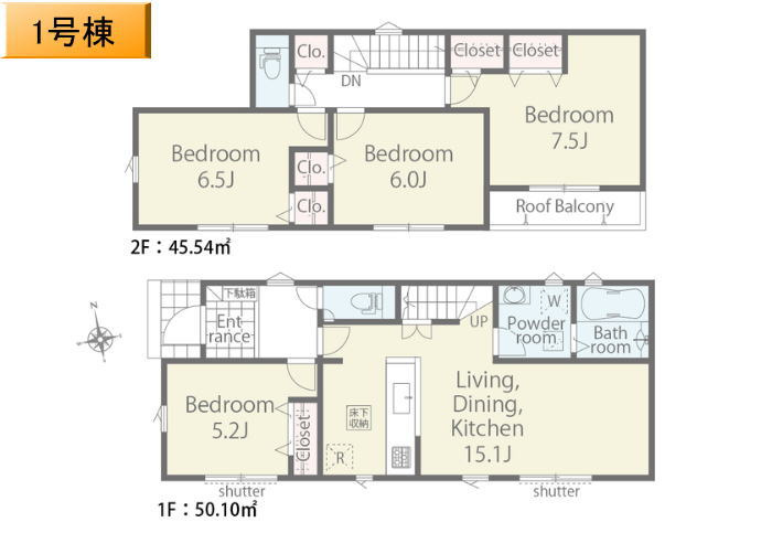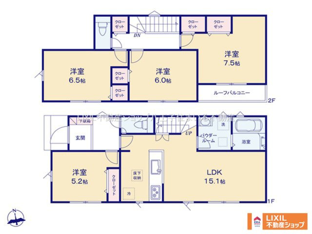 LDK 15.1帖 1室 洋室 5.2帖 1室 洋室 7.5帖 1室 洋室 6.5帖 1室 洋室 6.0帖 1室 |