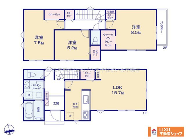 LDK 15.7帖 1室 洋室 8.5帖 1室 洋室 7.5帖 1室 洋室 5.2帖 1室 |
