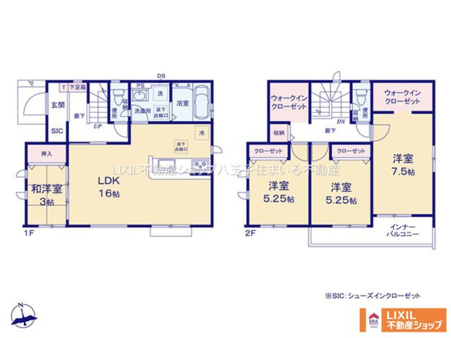 LDK 16.0帖 1室 和室 3.0帖 1室 洋室 7.5帖 1室 洋室 5.2帖 2室 |