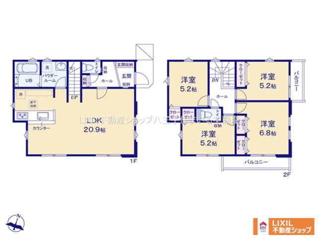 LDK 20.9帖 1室 洋室 6.8帖 1室 洋室 5.2帖 3室 |