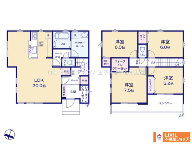 LDK 20.0帖 1室 洋室 7.5帖 1室 洋室 6.0帖 2室 洋室 5.2帖 1室 |