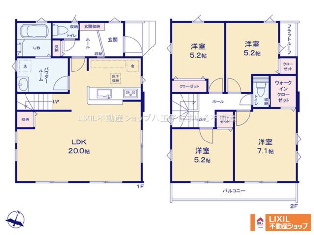 LDK 20.0帖 1室 洋室 7.1帖 1室 洋室 5.2帖 3室 |