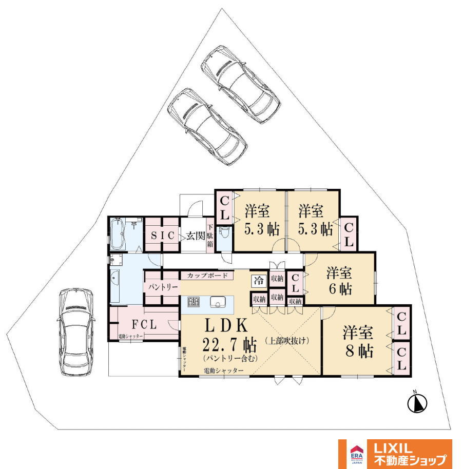 LDK 22.7帖 1室 / 洋室 8.0帖 1室 / 洋室 6.0帖 1室 / 洋室 5.3帖 2室 / |