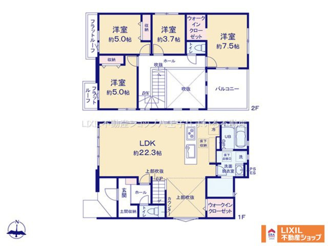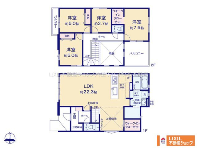 LDK 22.3帖 1室 洋室 7.5帖 1室 洋室 5.0帖 2室 洋室 3.7帖 1室 |