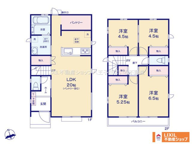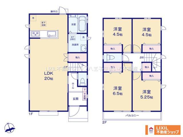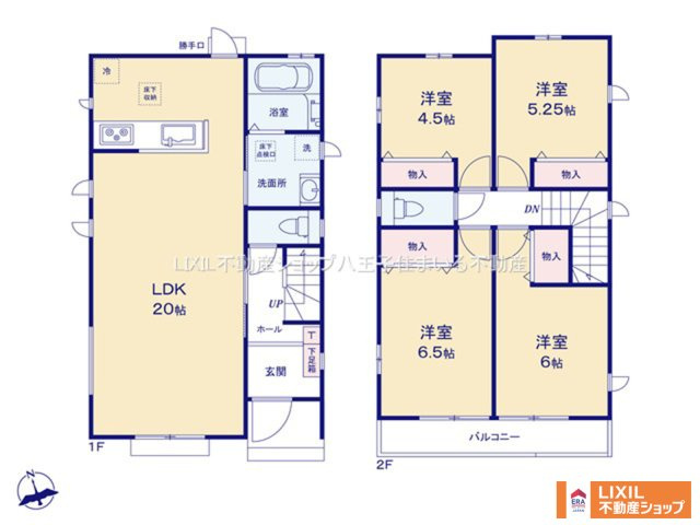 LDK 20.0帖 1室 洋室 6.5帖 1室 洋室 5.2帖 1室 洋室 4.5帖 2室 |