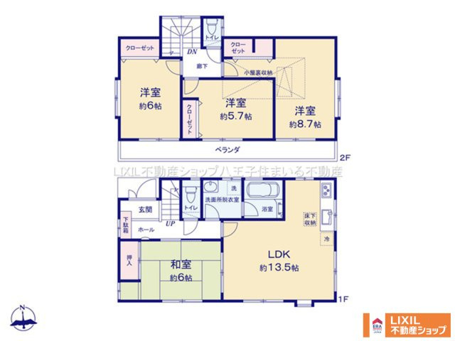 LDK 13.5帖 1室 / 和室 6.0帖 1室 / 洋室 8.7帖 1室 / 洋室 6.0帖 1室 / 洋室 5.7帖 1室 / |