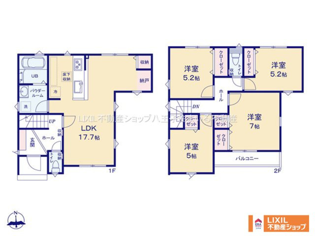 LDK 17.7帖 1室 洋室 7.0帖 1室 洋室 5.2帖 2室 洋室 5.0帖 1室 |