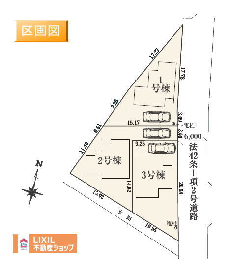 | 建物面積 | 92.34㎡ ~ 103.27㎡ | 土地面積 | 125.04㎡ ~ 146.46㎡ |
