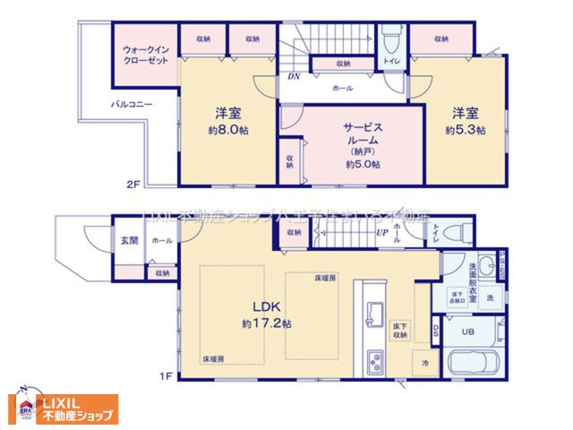 LDK 17.2帖 1室 洋室 8.0帖 1室 洋室 5.3帖 1室 S(納戸) 5.0帖 1室 |