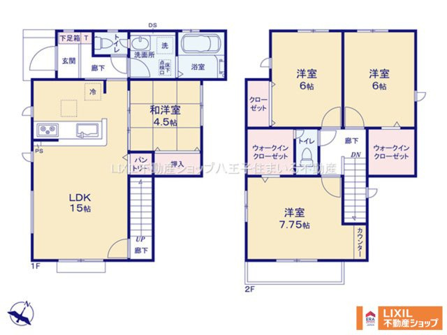 LDK 15.0帖 1室 / 和室 4.5帖 1室 / 洋室 7.7帖 1室 / 洋室 6.0帖 2室 / |