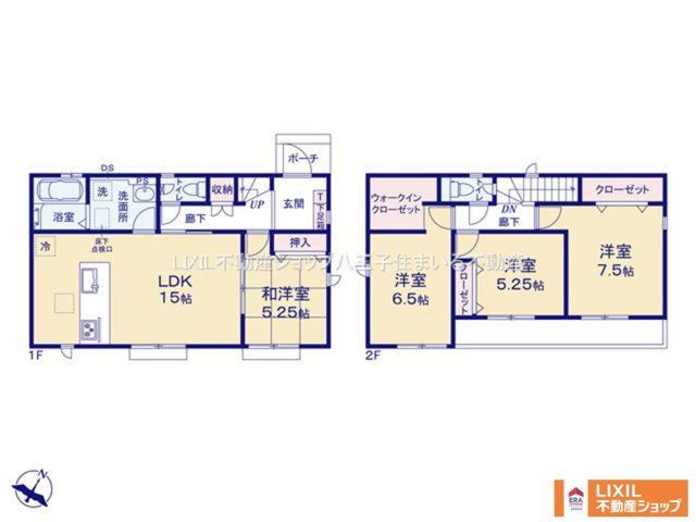 LDK 15.0帖 1室 和室 5.2帖 1室 洋室 7.5帖 1室 洋室 6.5帖 1室 洋室 5.2帖 1室 |