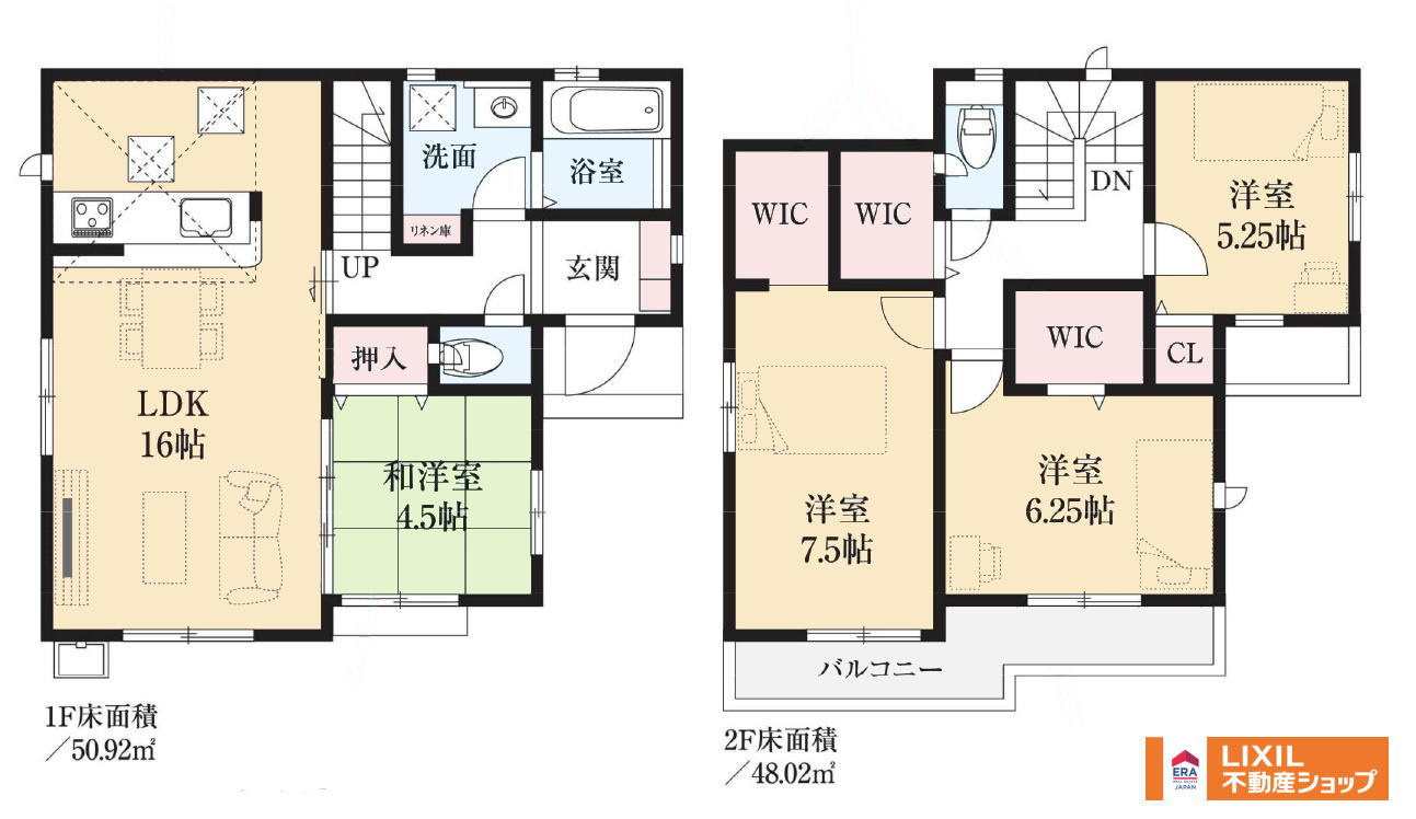 | 建物面積 | 98.53㎡ ~ 102.27㎡ | 土地面積 | 134.35㎡ ~ 162.54㎡ |