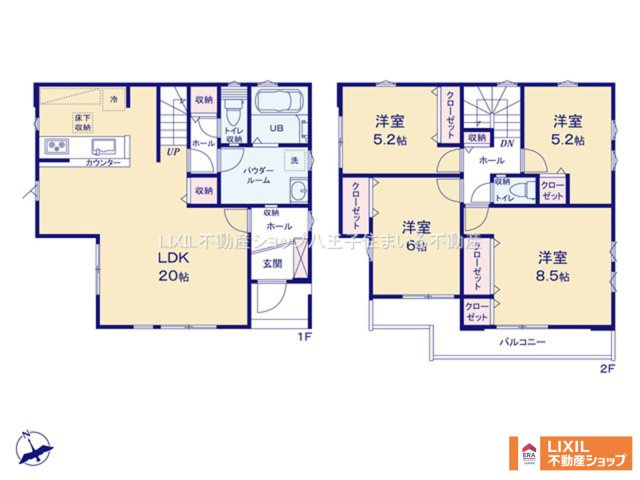 LDK 20.0帖 1室 洋室 8.5帖 1室 洋室 6.0帖 1室 洋室 5.2帖 2室 |