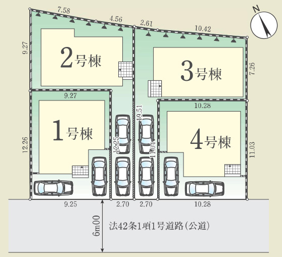 | 建物面積 | 92.34㎡ ~ 103.27㎡ | 土地面積 | 125.04㎡ ~ 146.46㎡ |