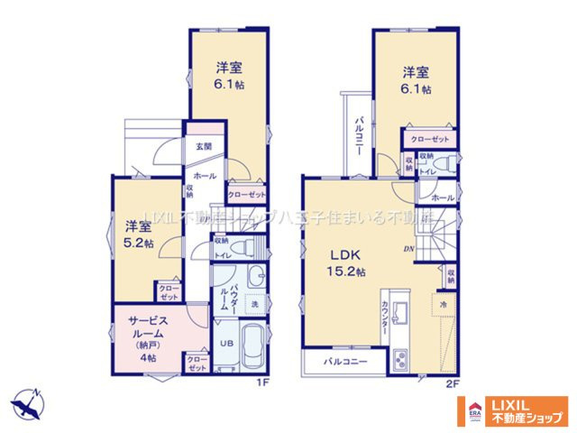 LDK 15.2帖 1室 洋室 6.1帖 1室 洋室 6.1帖 1室 洋室 5.2帖 1室 S(納戸) 4.0帖 1室 |