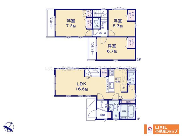 LDK 16.6帖 1室 洋室 7.2帖 1室 洋室 6.7帖 1室 洋室 5.3帖 1室 |
