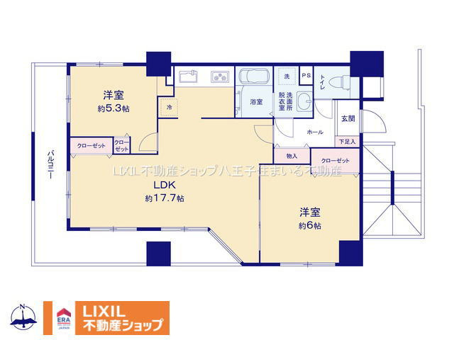 LDK 17.7帖 1室 / 洋室 6.0帖 1室 / 洋室 5.3帖 1室 / |