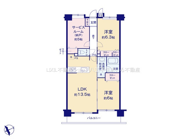 LDK 13.5帖 / 洋室 6.3帖 / 洋室 6.0帖 / S(納戸) 5.0帖 / |