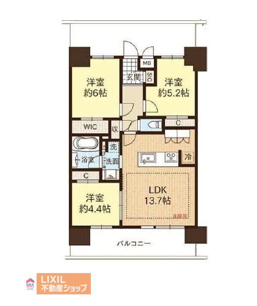 LDK 13.7帖 / 洋室 6.0帖 / 洋室 5.2帖 / 洋室 4.4帖 / |
